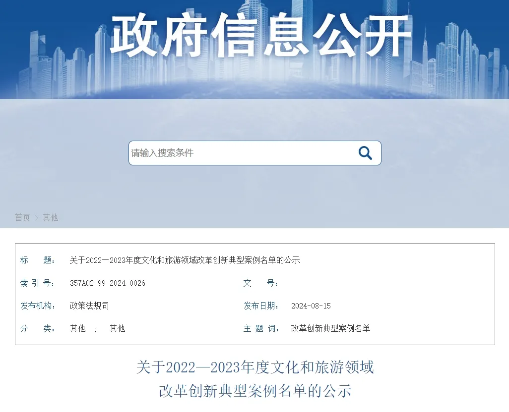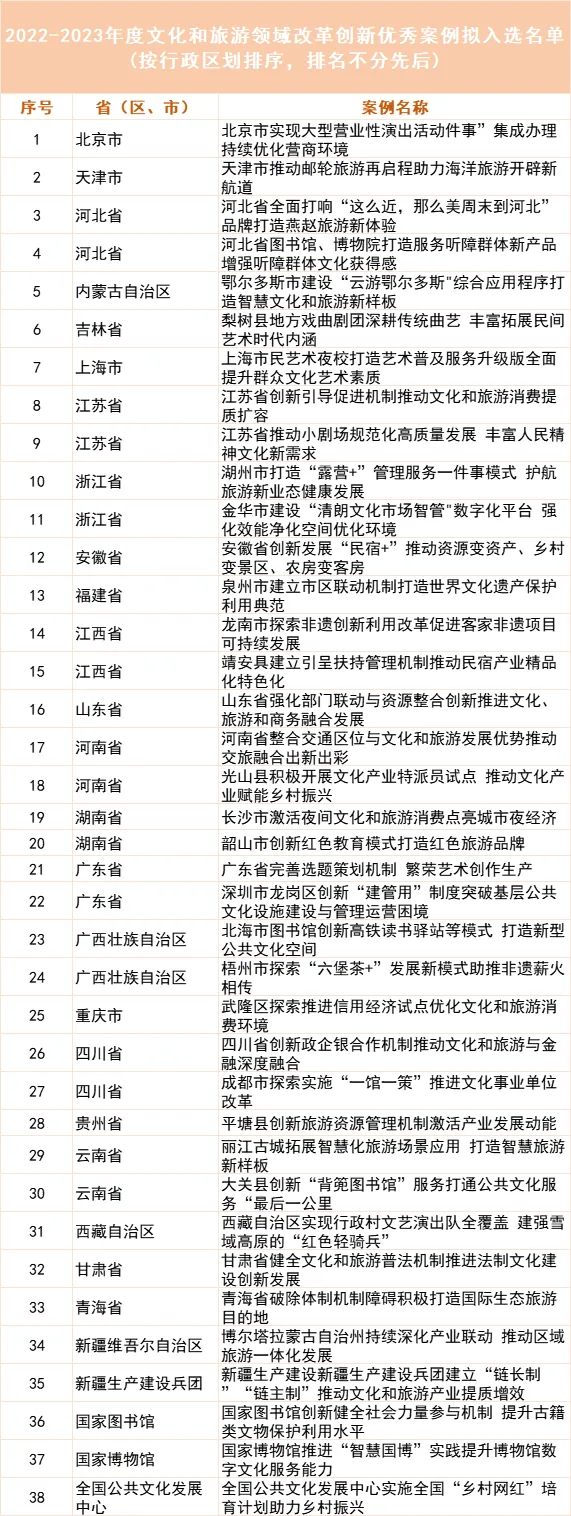 关于2022—2023年度文化和旅游领域改革创新典型案例名单的公示